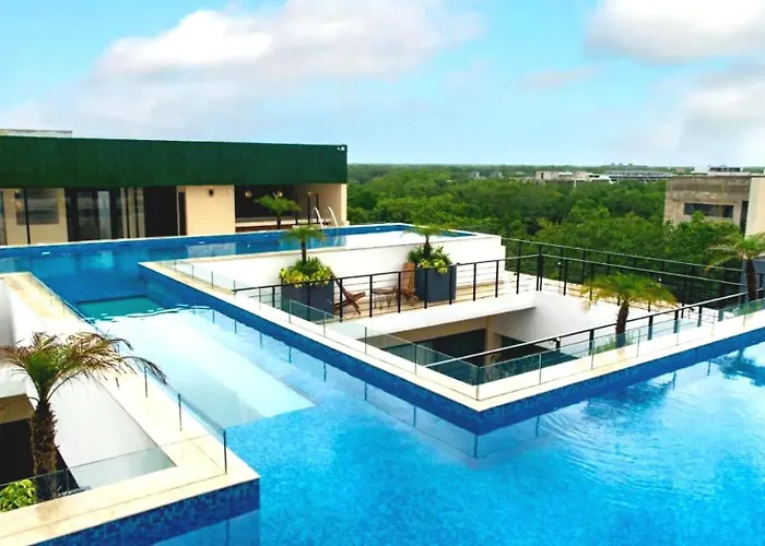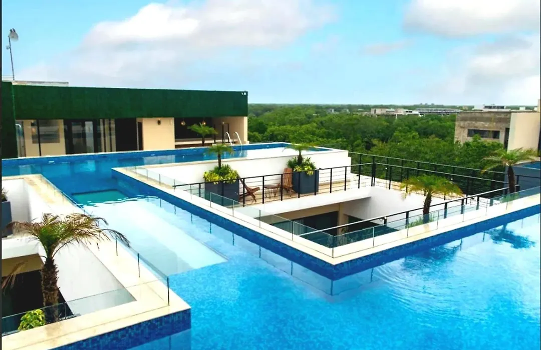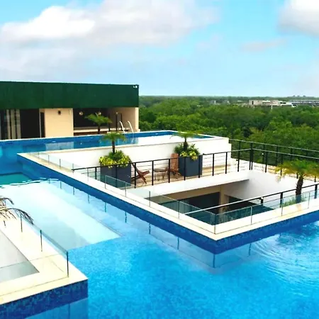 O Apartamento Familiar En Aldea Zama Tulum de 100 m² está situado a caminhada de 25 minutos de Cenote Calavera e dispõe de piscina no último andar. Com terraço e vistas para a cidade, o apartamento de 2 quartos está localizado no bairro Zama em Tulum.
